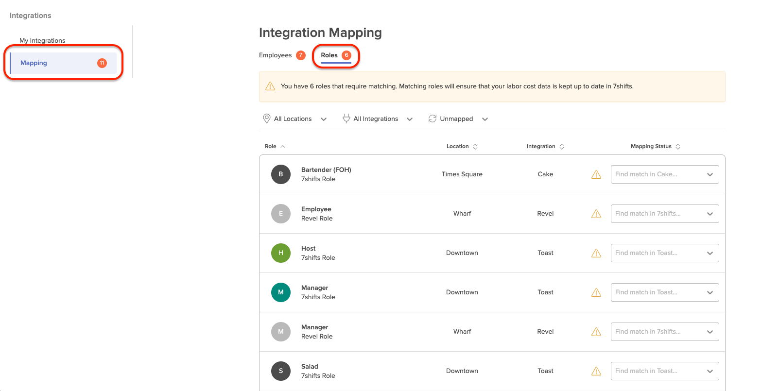 3. Match your existing Roles. This will ensure Employees will be assigned the correct Roles in 7shifts when they are created.