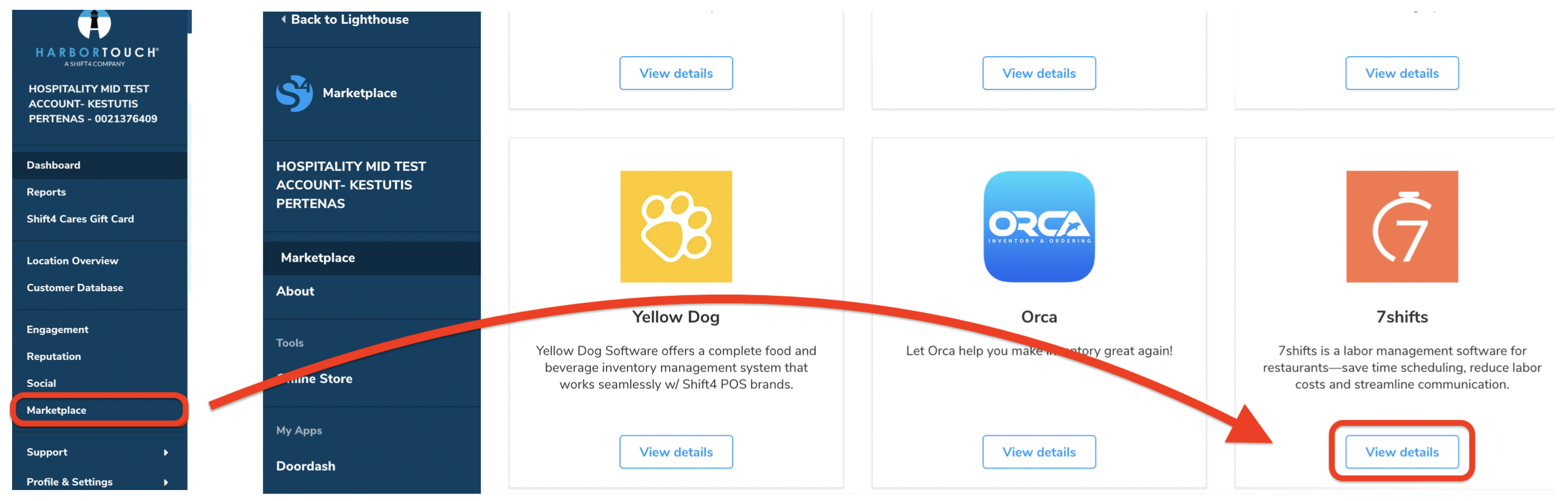 6. In the Shift4 Marketplace, you will need to scroll down to find the 7shifts app and click on 'View details.'