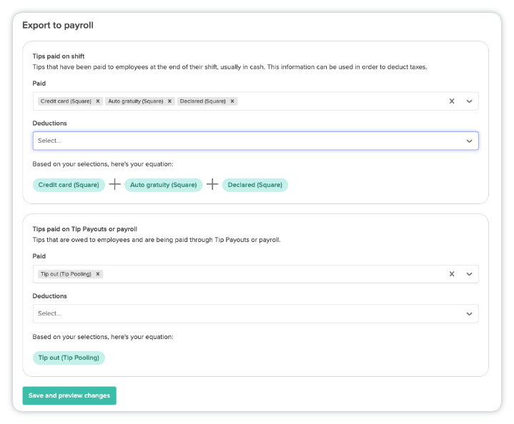 Note: You can choose to sync tips through Tip Pooling, Tip Payouts, or a combination of both depending on your business requirements.
