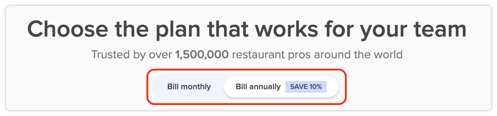 3. Use the Bill monthly / annually slider to compare billing frequency options.