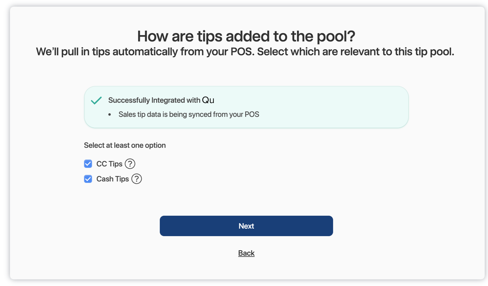 4. Select the option Pull in tips automatically from my POS > click Next.