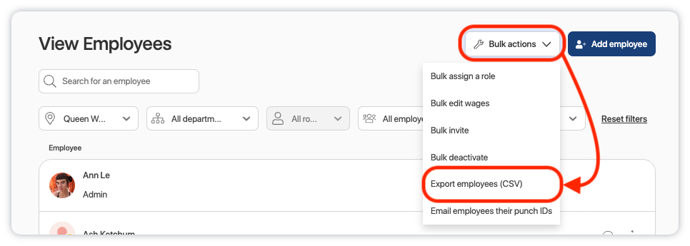 4. Select Export employees (CSV) from the dropdown: