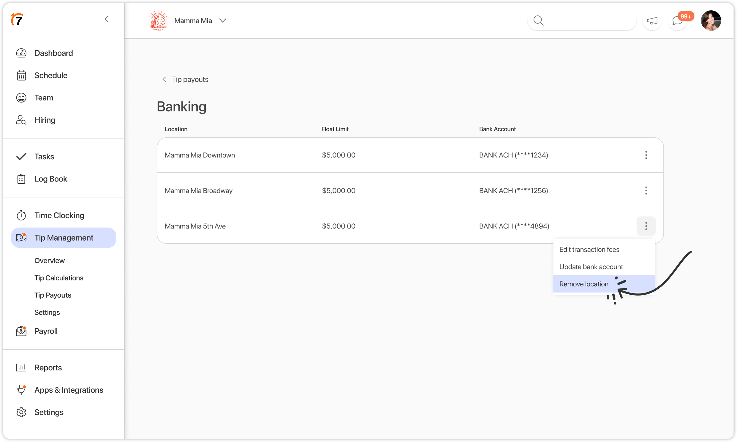 Admins can manage and disable Tip Payouts directly from within the 7shifts web app. Follow the steps below to successfully deactivate the feature and manage your remaining funds.