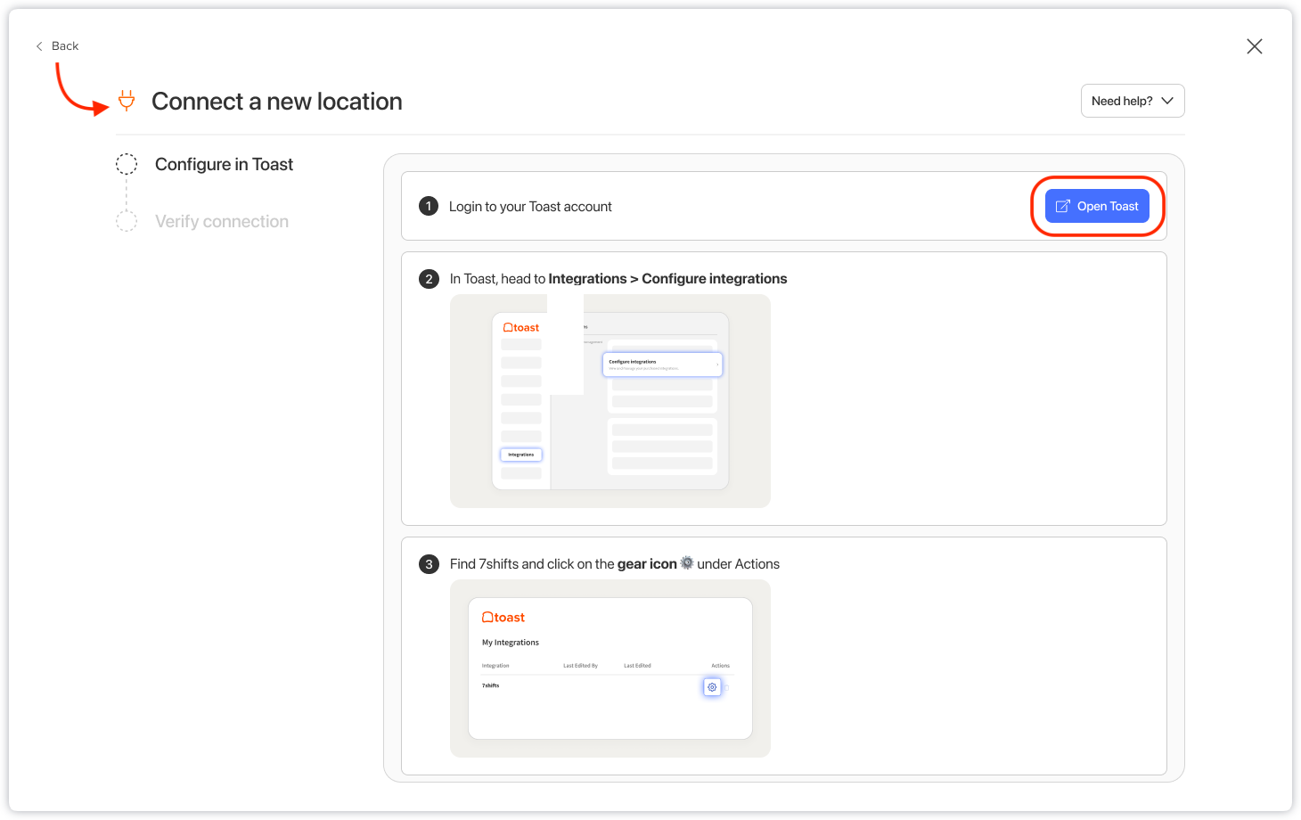 Important: Make sure you have purchased a connector via Toast for each location want to integrate.