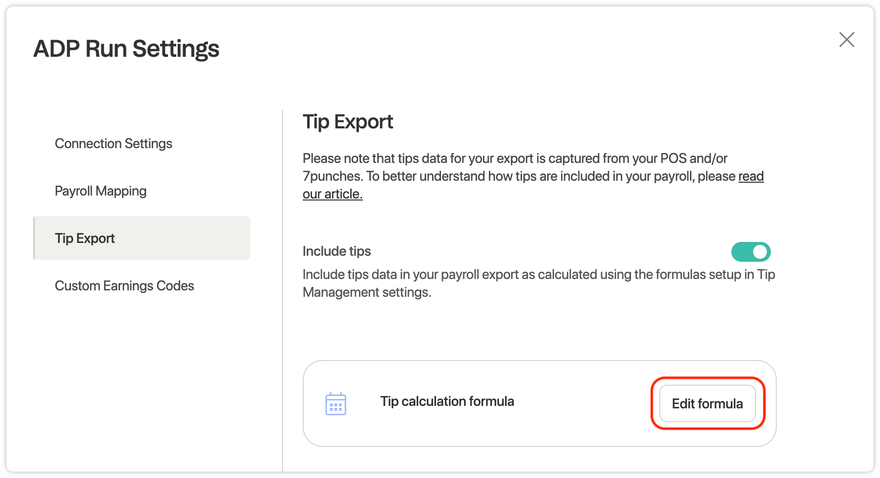 11. Moving forward you can also navigate to Tip Management > Settings > Set up your tip calculations and verify that tips are mapped correctly to payroll setting to prevent errors.
