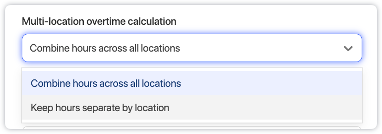 ⚠️ Important: This setting controls the calculation of overtime, not the allocation. The resulting overtime will still be applied to the location where the employee went into overtime (typically the last location worked), regardless of the calculation option chosen.