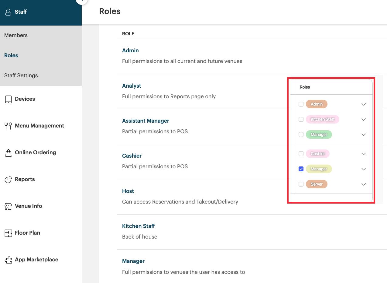 For example, on 7shifts you have a catch-all Waiter role. However, on TouchBistro you have a Waiter staff type and a Head Waiter staff type. The Head Waiter staff type has a few additional managerial rights set.