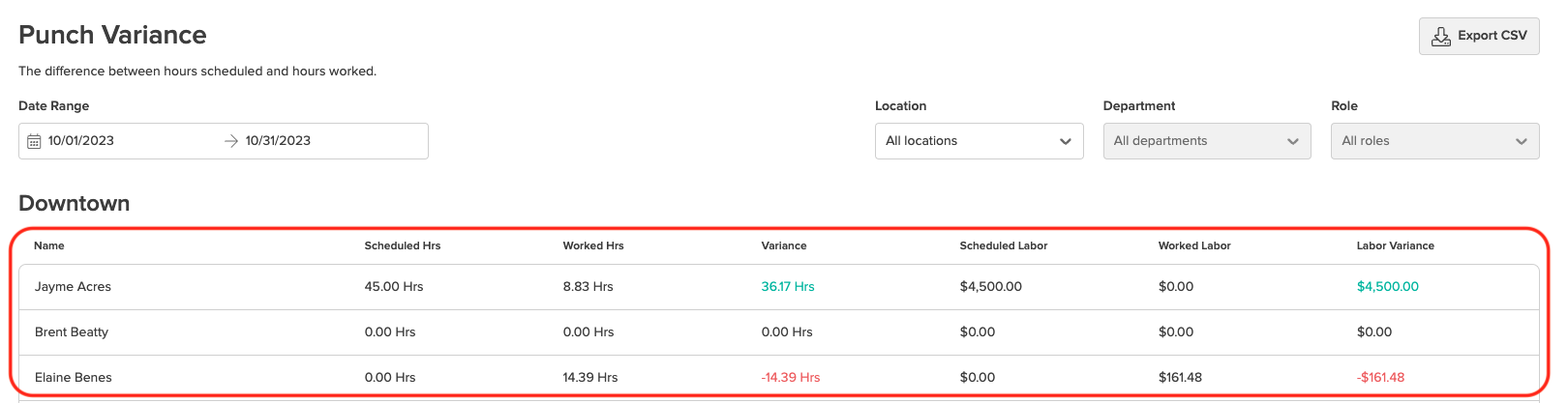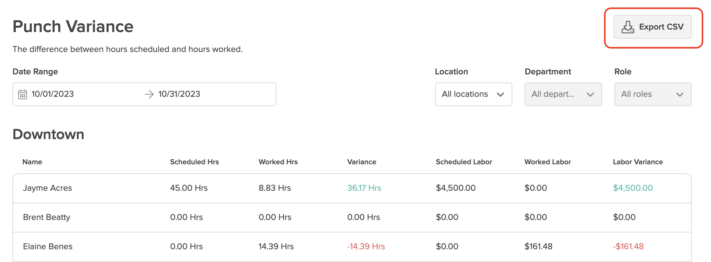 2. Narrow down your report using the Date Range, Location, Department, and Role filters: