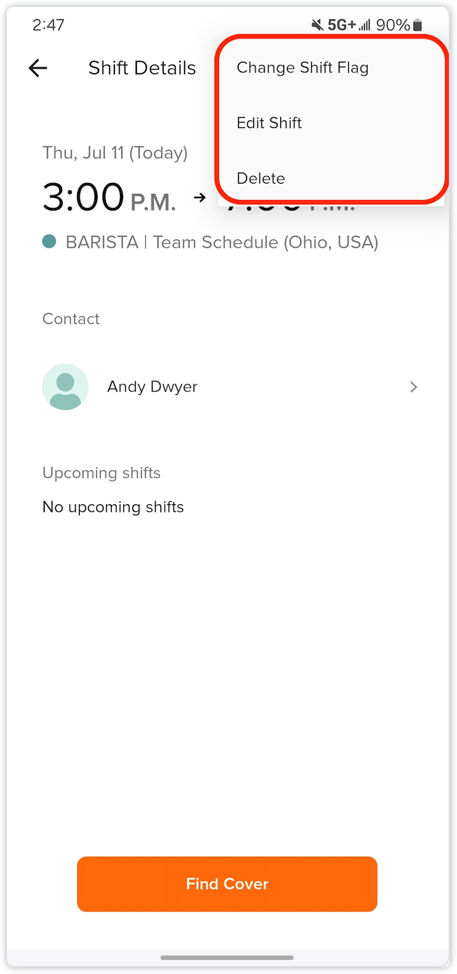 - Click on an upcoming shift to expand more details, edit/delete the shift, change the shift flag or Find Cover.