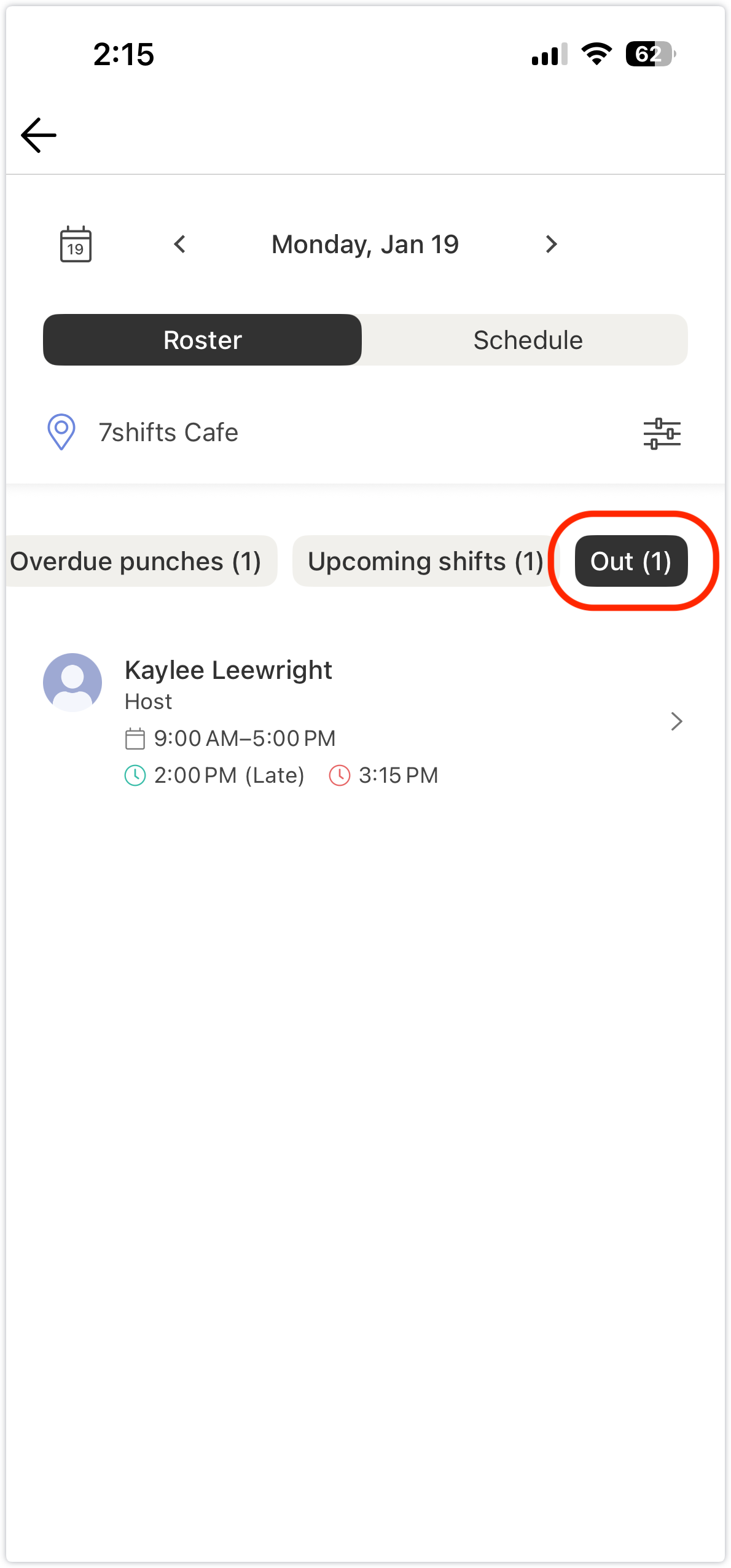 - Can view who's scheduled to work, who's currently punched in, employees who are late for their shift and who's punched out.