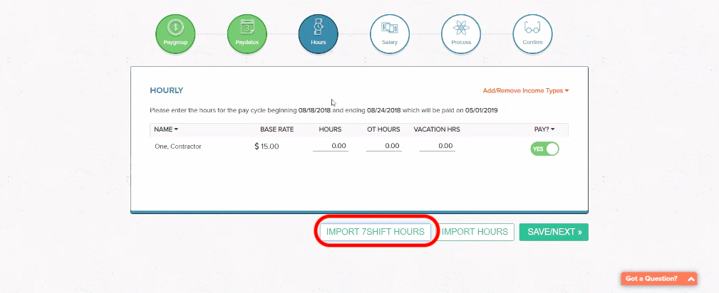 3. Head to your Wagepoint account, select the pay period, and click 'Import 7shift Hours.'