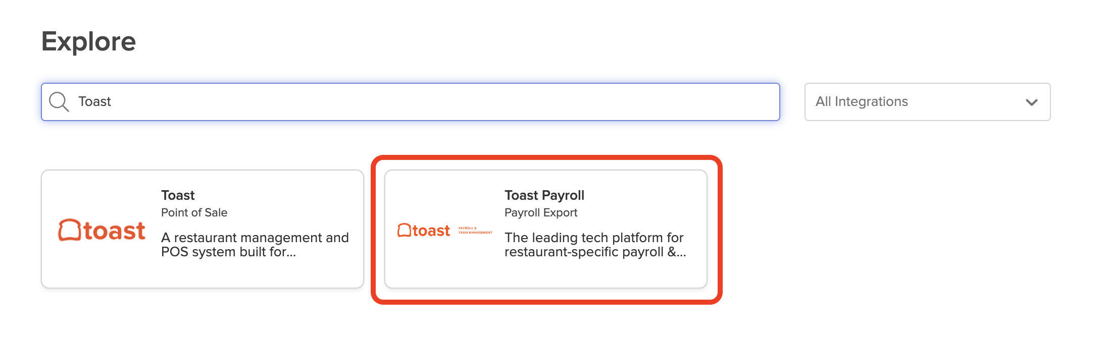 2. Search and select Toast Payroll: