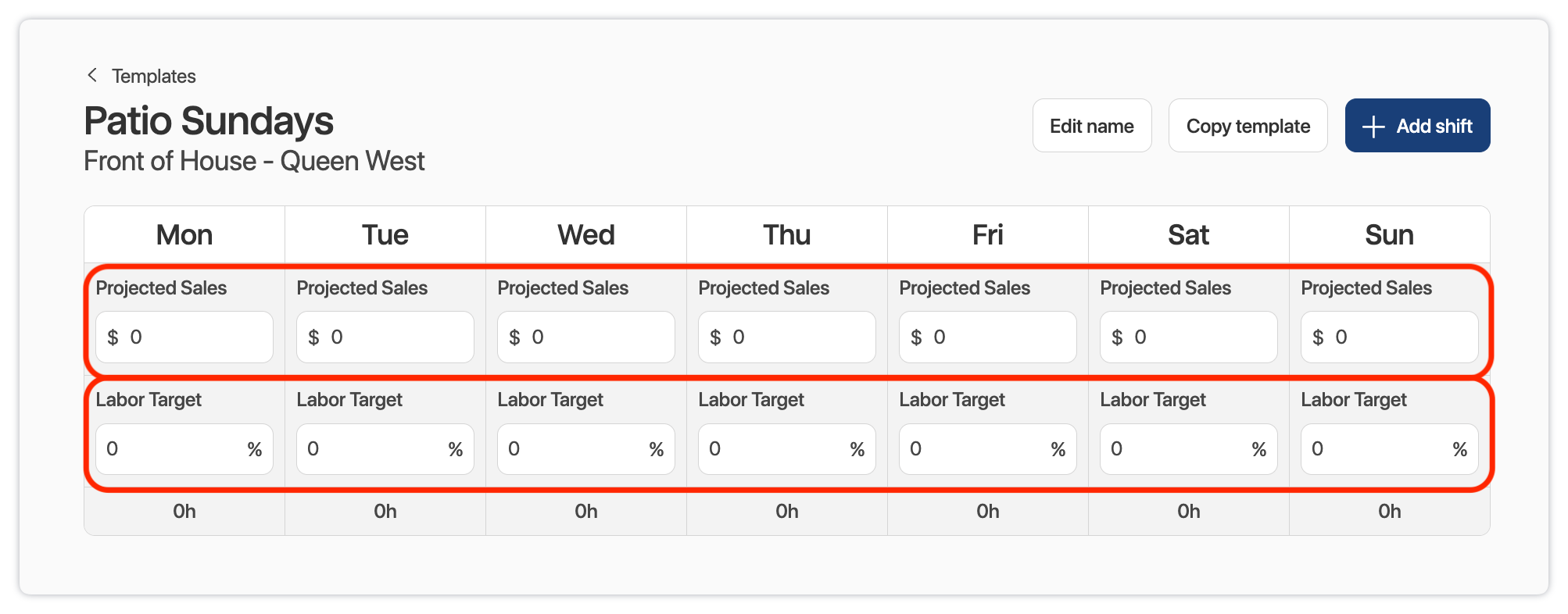 ⚠️ Sales projections from scheduling templates will not carry over if your Location has an integrated POS system.
