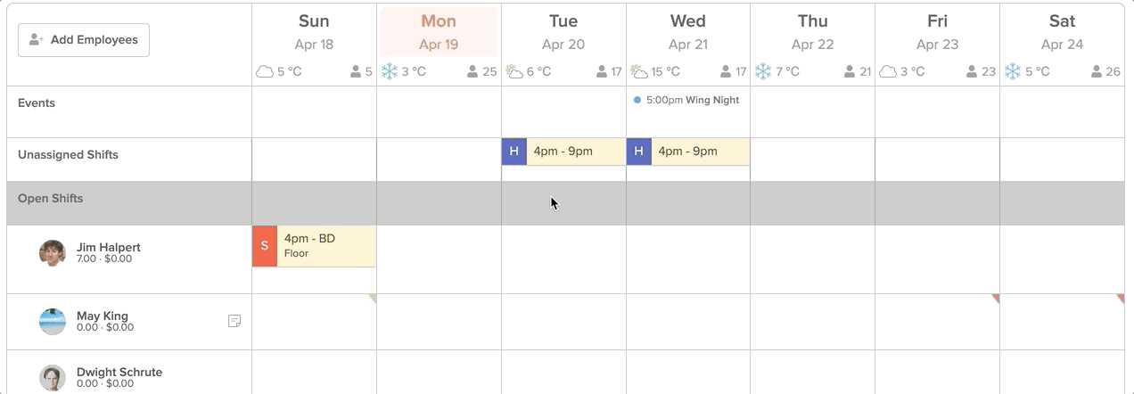 8. You can drag and drop unassigned shifts to appropriate employees: