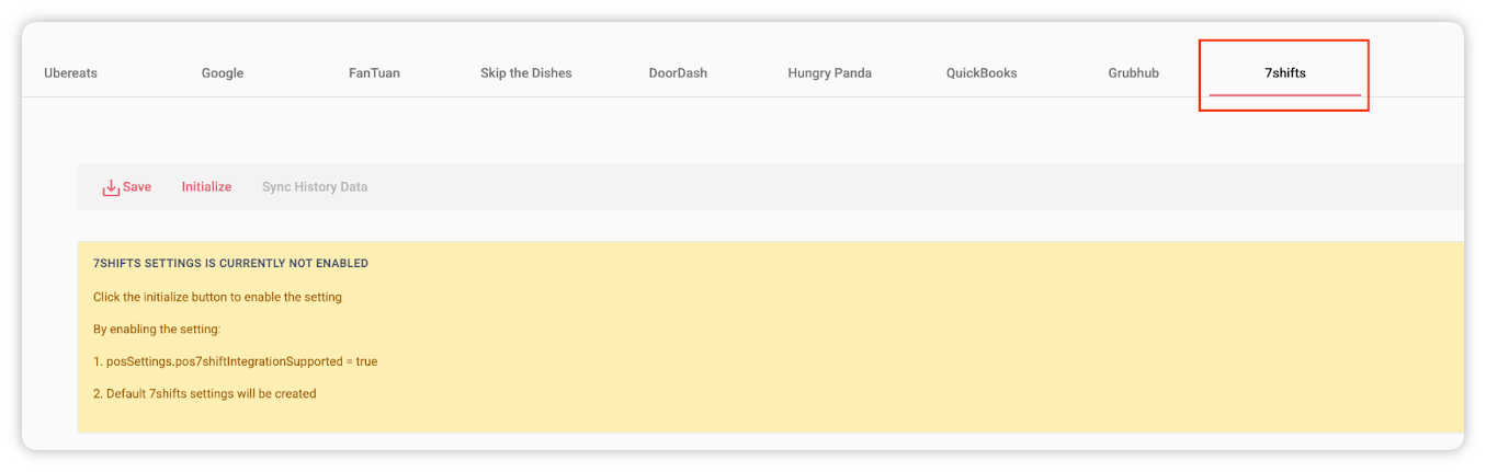 - Navigate to 7shifts Integration Settings.