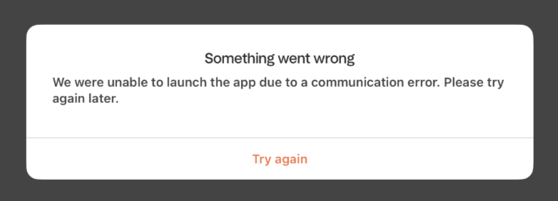 The 7shifts iPad app displays the following message: "We are unable to load the app due to a communication error. Please try again later."