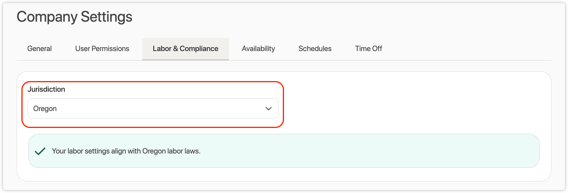 - Under the Advanced Labor section, Oregon compliance settings will automatically populate as per the Jurisdiction set earlier. Checkmark the options according to your preferences.