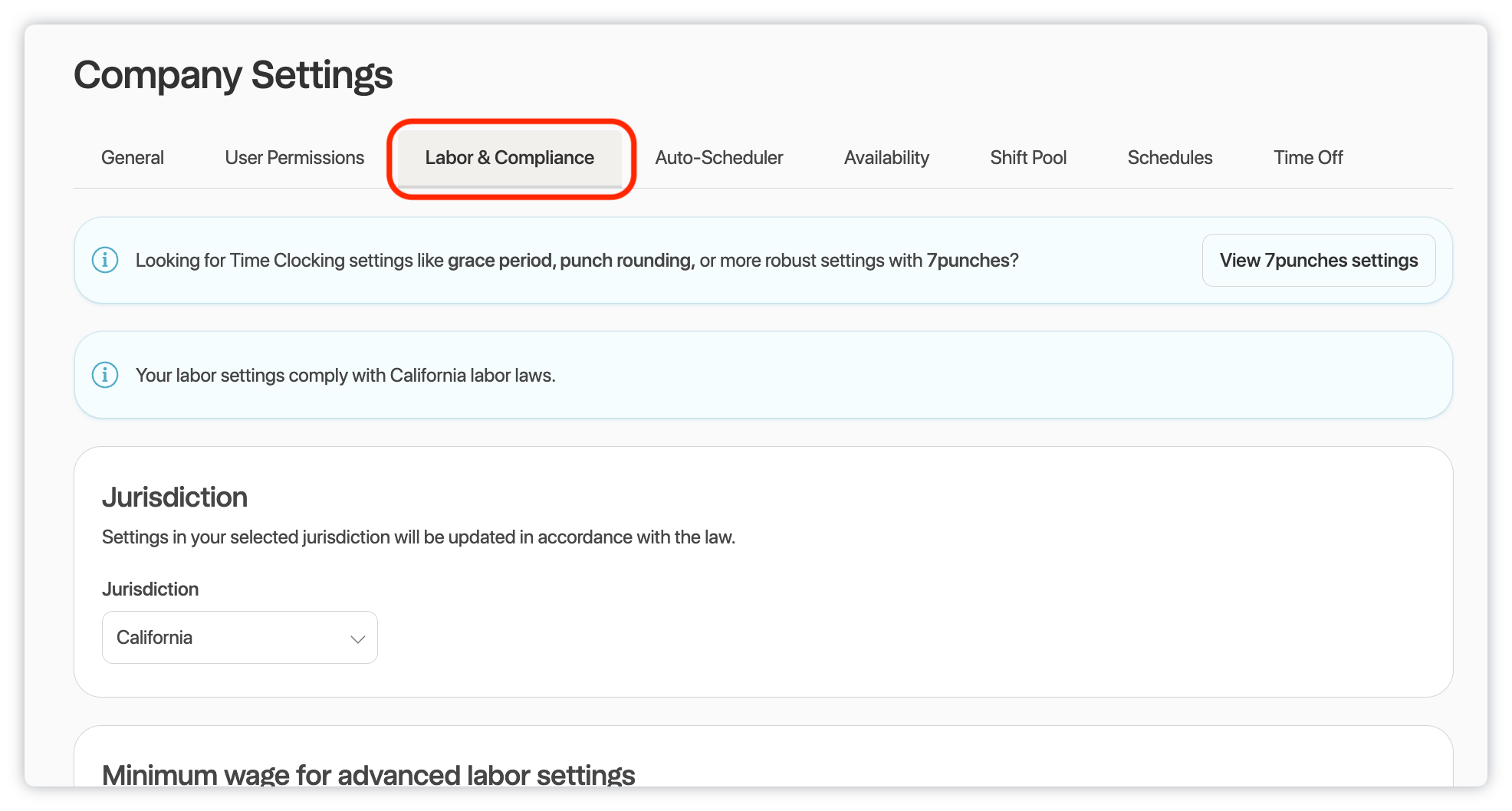 Select the drop downs below to learn more about the Labor & Compliance settings available to you in 7shifts: