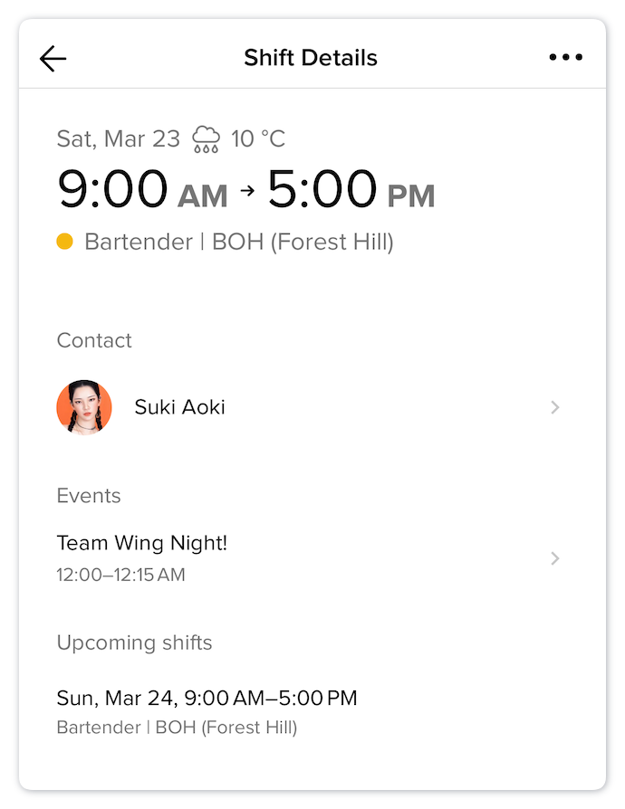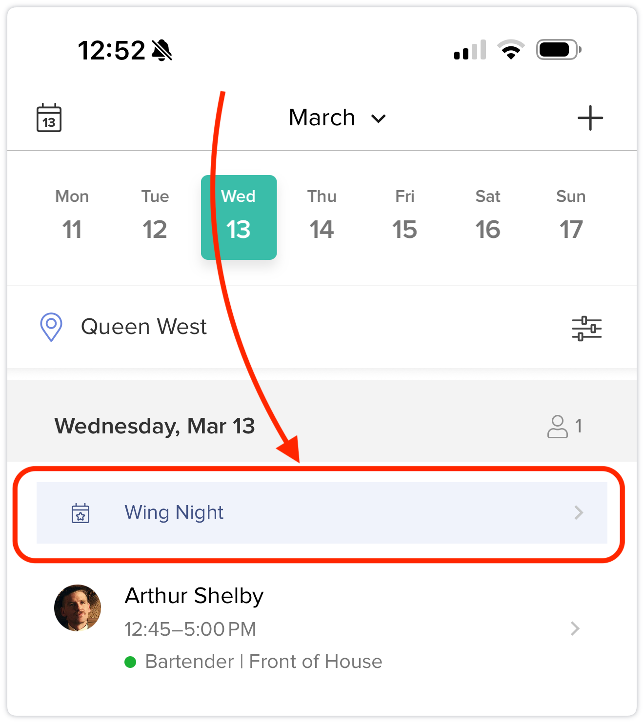 ⚠️ Only Admins or Managers / Assistant Managers with the 'Can manage events' permission will be able to manage Events. Click here to learn more about Events on Mobile.- See the list of Employees scheduled for the day that you're viewing. We'll let you know how many Employees are working that day too (not including open shifts).