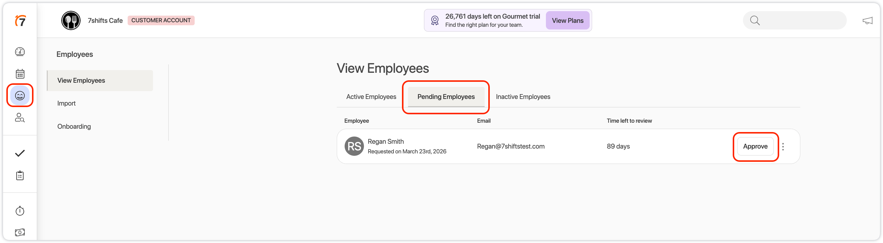 - Pending users do not have access to 7shifts until they have been approved by Admin/Manager with permissions and have accepted the invite from 'Join your team' email.