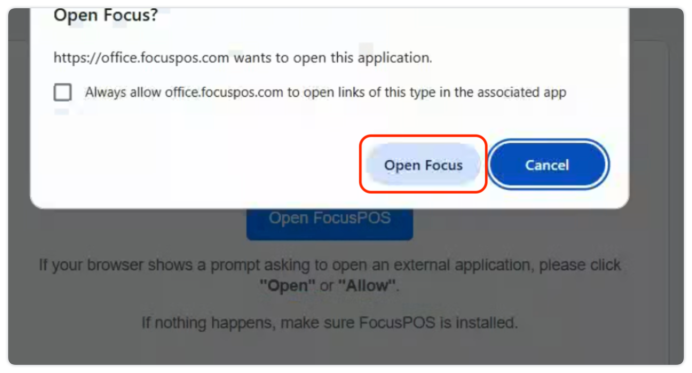 - Select Open Focus and follow the prompts to grant 7shifts access to your account: